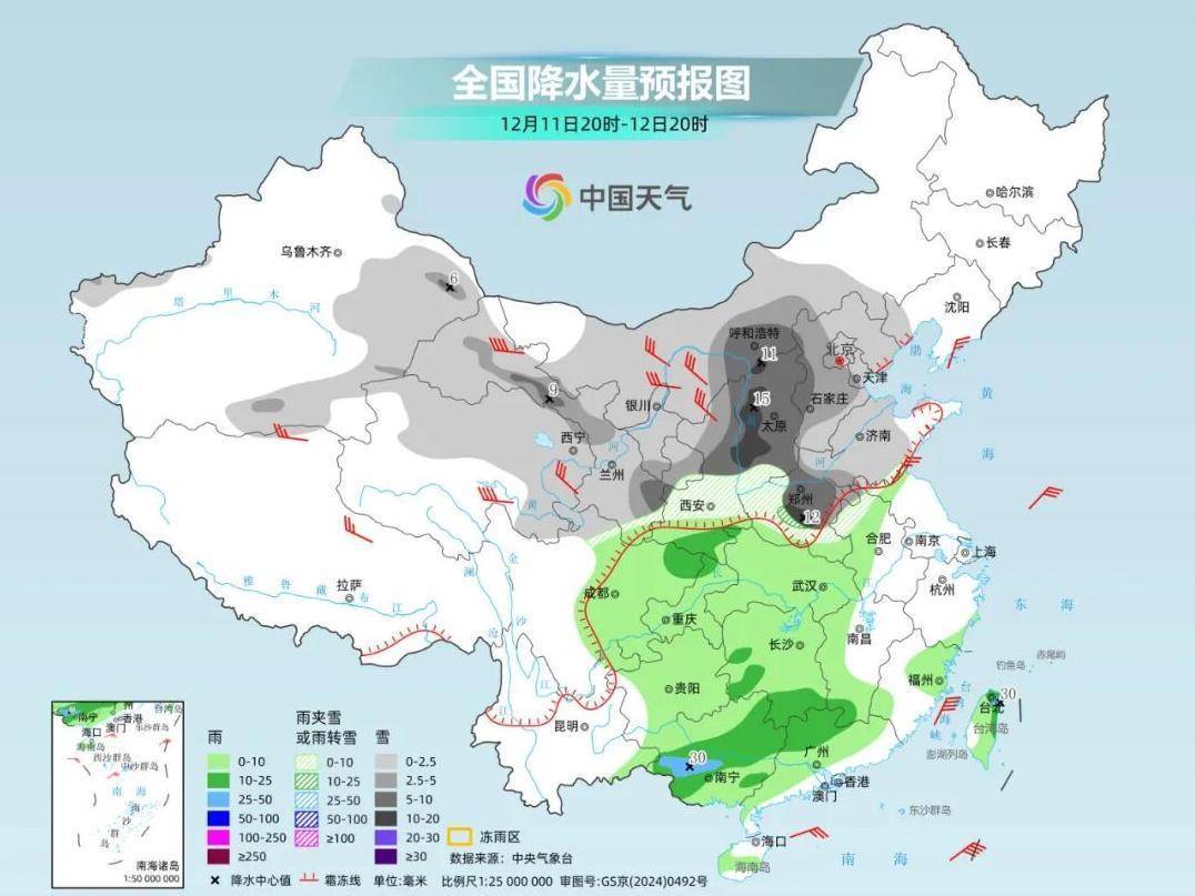 雪有多大?预计11日20时至12日20时,甘肃中部和东南部、内蒙古河套地区、陕西中北部、山西、河北西部、河南中北部等地部分地区有大雪,其中山西西部、河南中部等地局地有暴雪,上述部分地区新增积雪深度5至10厘米,局地可达12至18厘米。华北、黄淮多地的今冬初雪也将在这轮过程中“正式签收”。